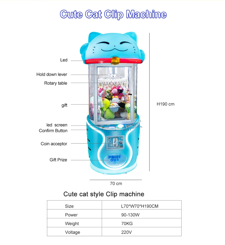 Cute Design Space Cute Cat Clip Prize Coin-operated Game Machine Clamp Vending Arcade Machine